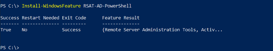 Check the status of the RSAT PowerShell module. On the SharpHound Enterprise server, open a PowerShell as an Administrator and run: